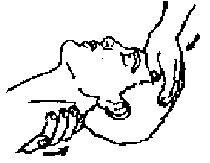 Si al acercar la mejilla a la boca del accidentado observamos que no respira, sin perder tiempo colocamos al accidentado (sea traumático o no) en posición decúbito supino (estirado mirando hacia arriba) y después de explorar su boca comprobar la existencia de cuerpos extraños (chicles, etc), procediendo posteriormente a abrir las vías aéreas mediante una hiperextensión del cuello evitando que la lengua obstruya la entrada de aire.